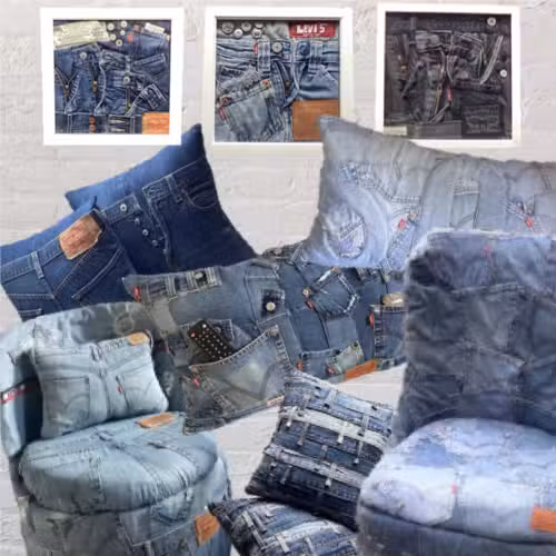 We transform vintage Levi’s denim into one-of-a-kind cushions, furniture, and wall art. Alongside our handmade pieces, we curate unique vintage finds with character and history.