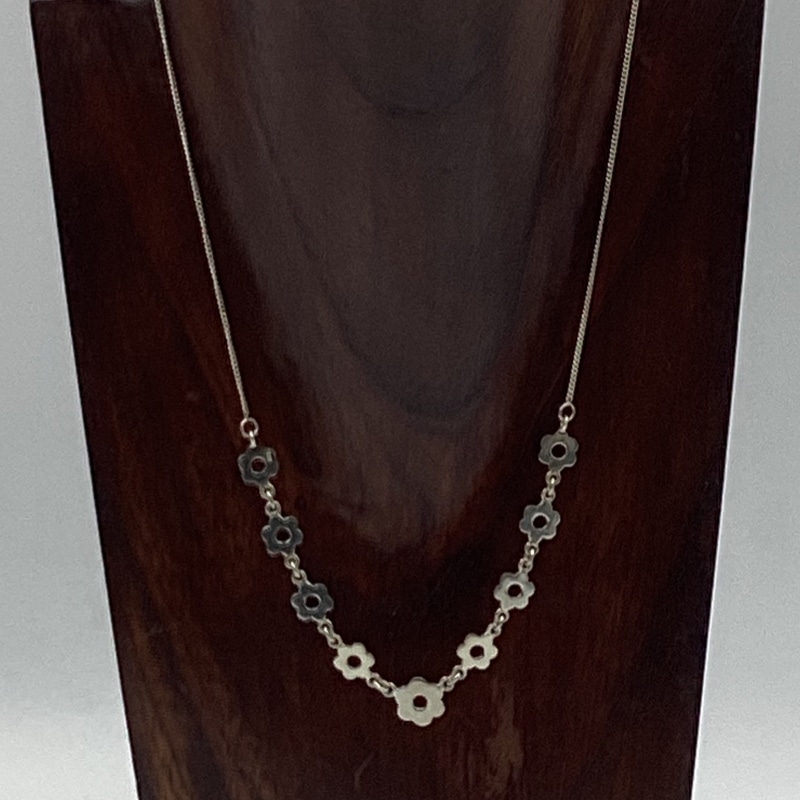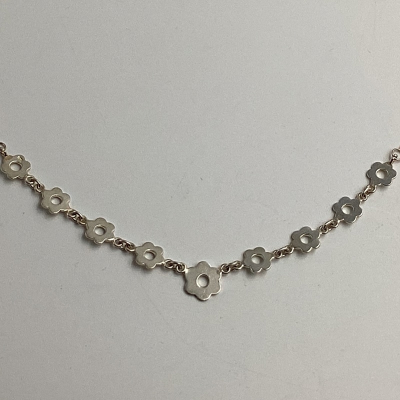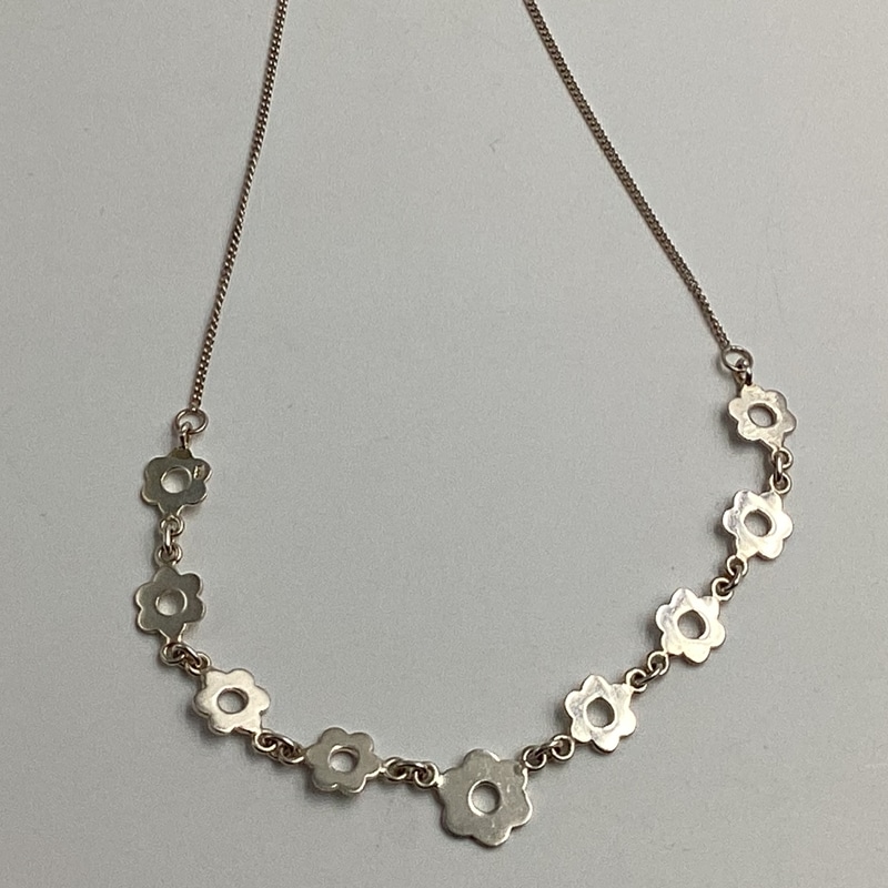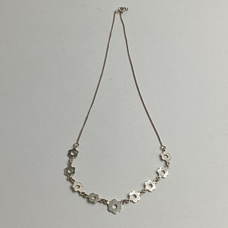 Elevate your everyday style with this Modern Minimalist Daisy Necklace. Crafted in high-quality sterling silver, this piece features a sleek chain accented with delicate daisy links that bring a subtle floral touch to your look. Its clean lines and polished finish make it the perfect accessory for a modern, effortless aesthetic.